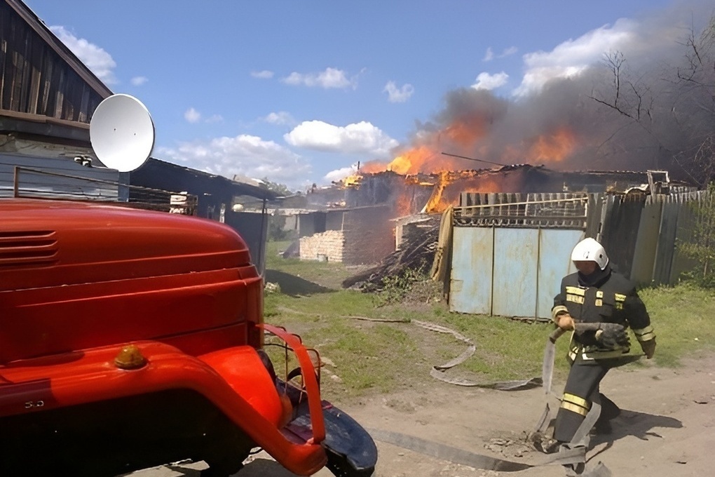 По данным спасателей, загорелись надворная постройка, гараж и сарай под общей кровлей размером 15 на 4 метра. Огонь полностью уничтожил здание. К моменту прибытия пожарных строение было охвачено пламенем.